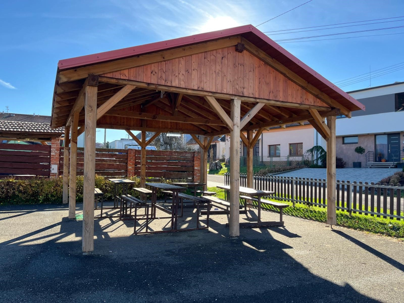 Altán se sedlovou střechou Stavba altánů ve Vlčnově Realizace altánu se sedlovou střechou. V případě zájmu o dřevostavbu do Vaší zahrady nebo obce se na nás obraťte. Kontaktní osobou pro cenovou nabídku na dřevostavby je ing. Jaroslav Kocurek na telefonu 603 823 156.