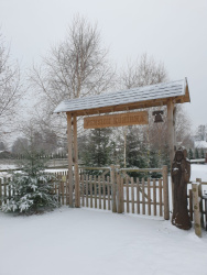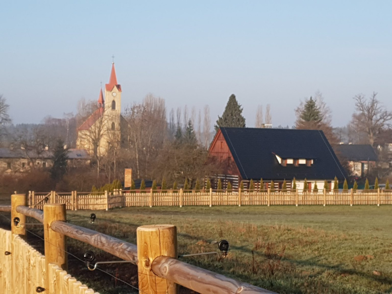 Ohrada kombinovaná (tedy žlabová ohrada s půlkuláčovým plotem v jednom) byla tentokrát realizovaná v okrese Děčín. Součástí dodávky nebylo jen ohrazení, ale také výroba a montáž velké vjezdové brány v odpovídajícím provedení s ohradou.