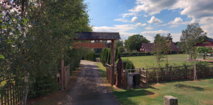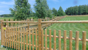 Ohrada kombinovaná (tedy žlabová ohrada s půlkuláčovým plotem v jednom) byla tentokrát realizovaná okrese Děčín. Součástí dodávky nebylo jen ohrazení, ale také výroba a montáž velké vjezdové brány v odpovídajícím provedení s ohradou.
