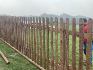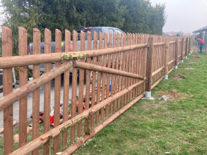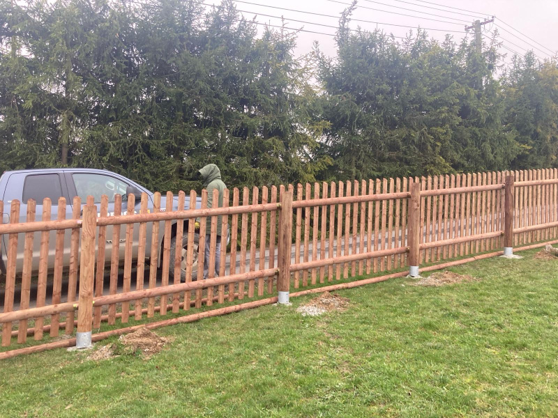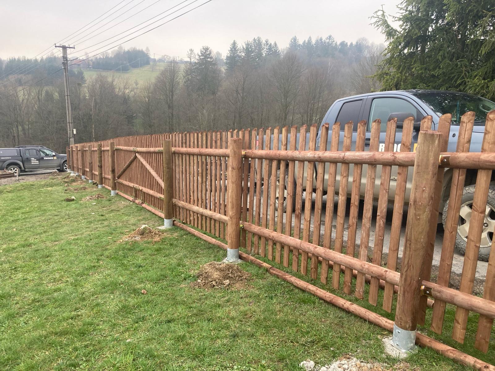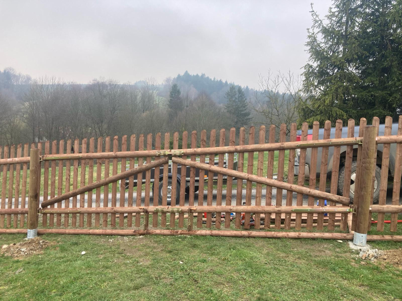 Palisády + plotové dílce + sloupky + kotevní špice + úchyty.