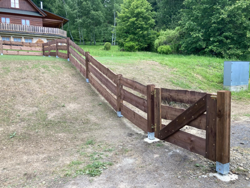 Zákazník zvolil provedení se 3 ráhny v plotovém poli, aby mezery pro danou výšku byly v rozmezí 10–15 cm či méně.